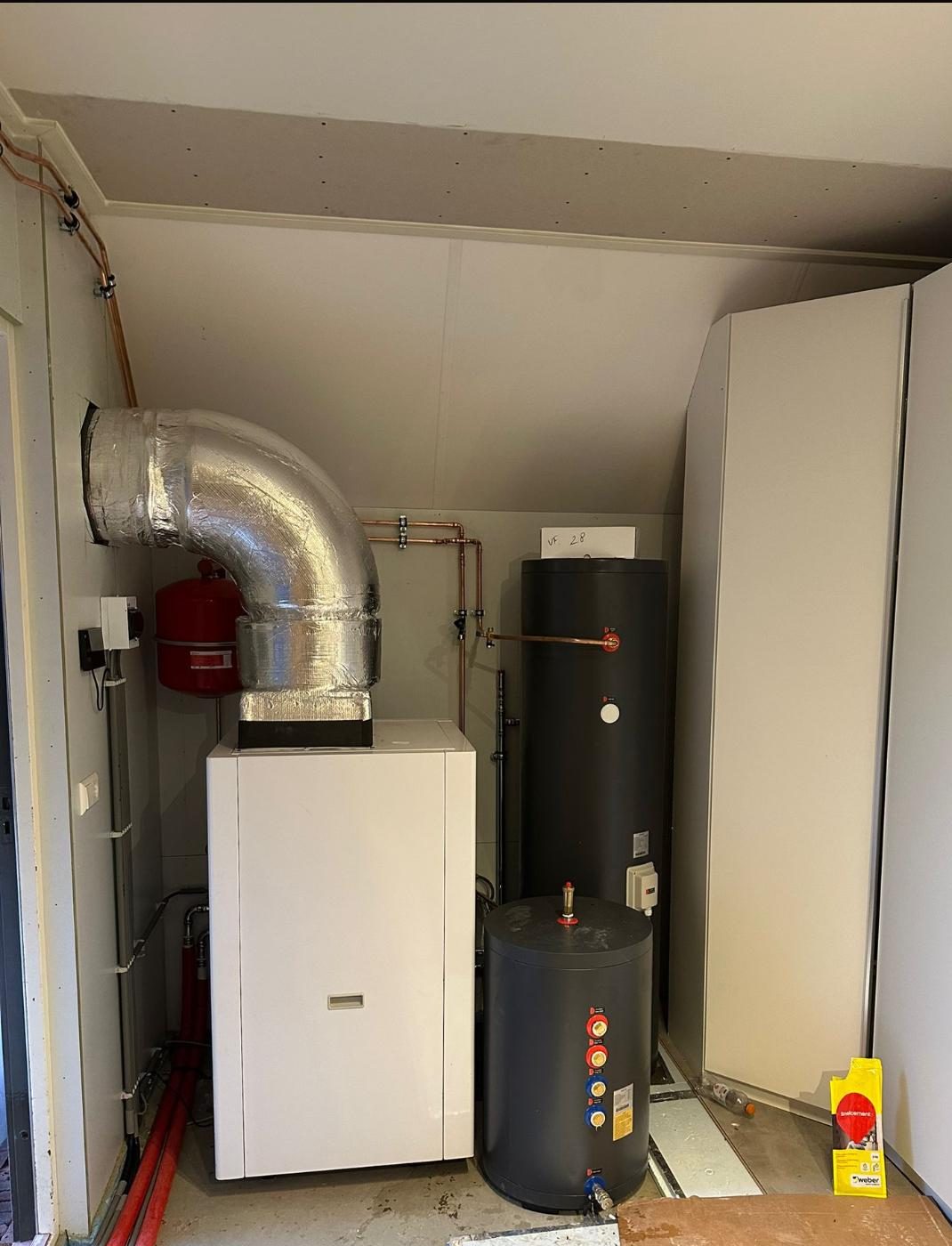 Plaat het mono block buiten en de combiboiler op de locatie van de gasketel.